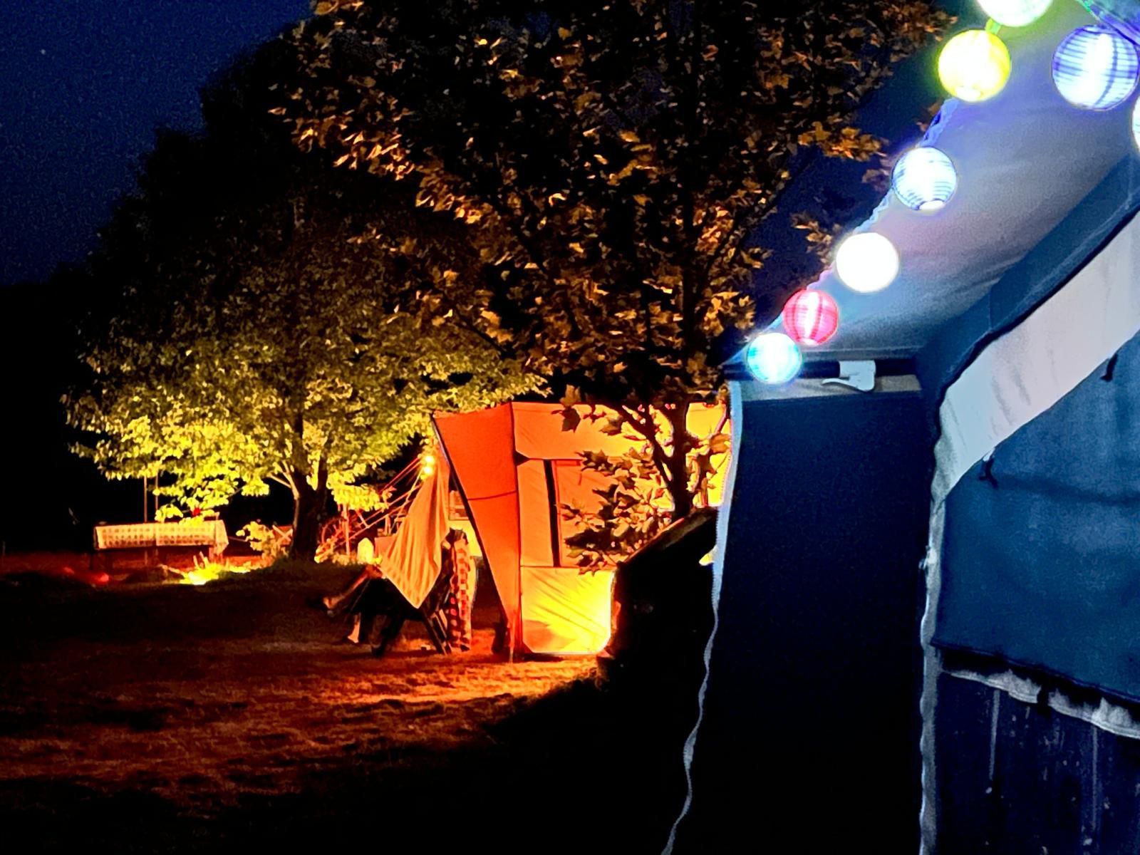 Daarnaast bieden we de mogelijkheid om je kampement op te slaan op het natuurterrein. Met maximaal 5 gezinnen lekker ‘back to basic’. Daar kun je gebruik maken van een koelkast en oplaadpunten in de blokhut aan het begin van het terrein.