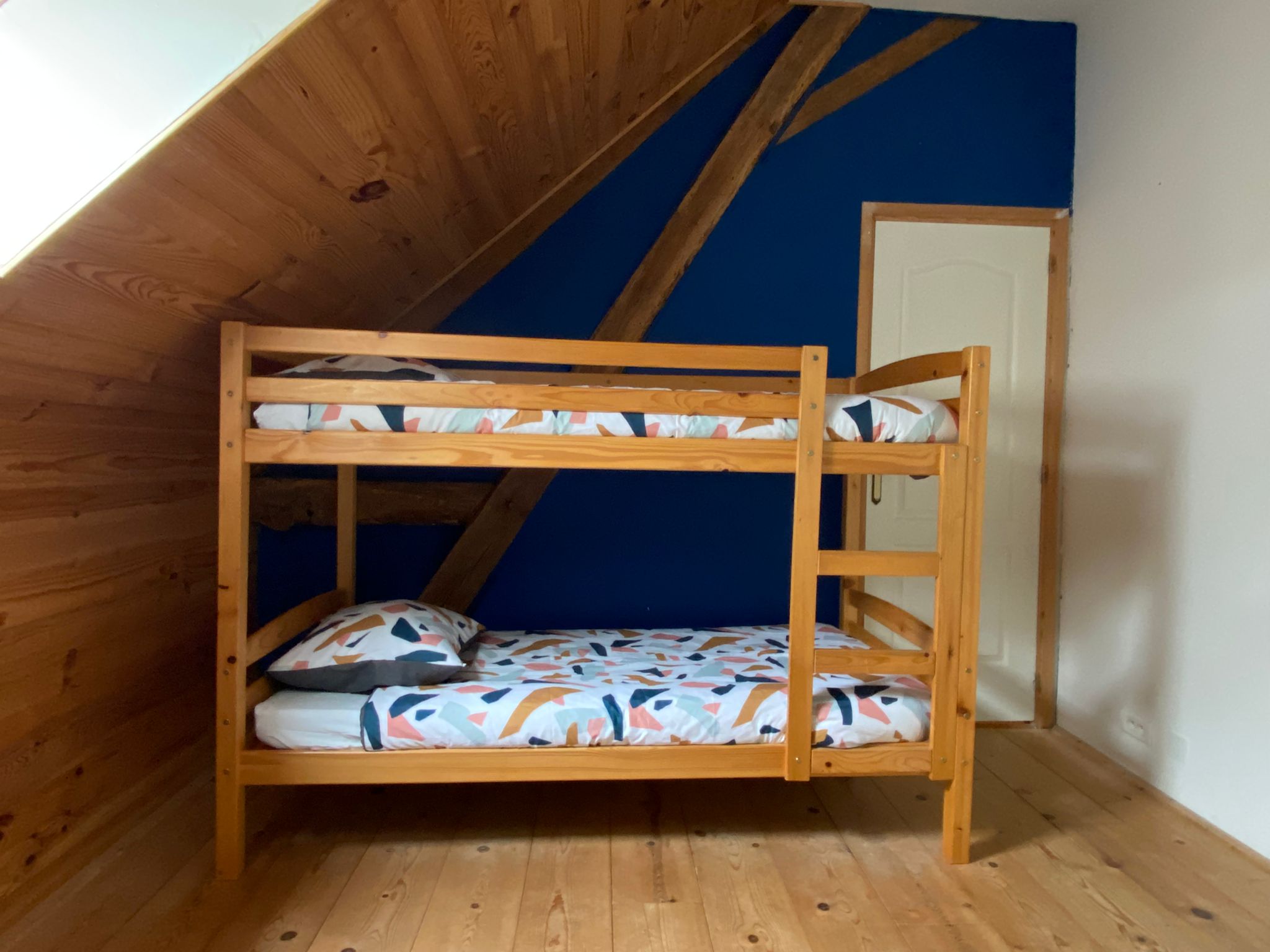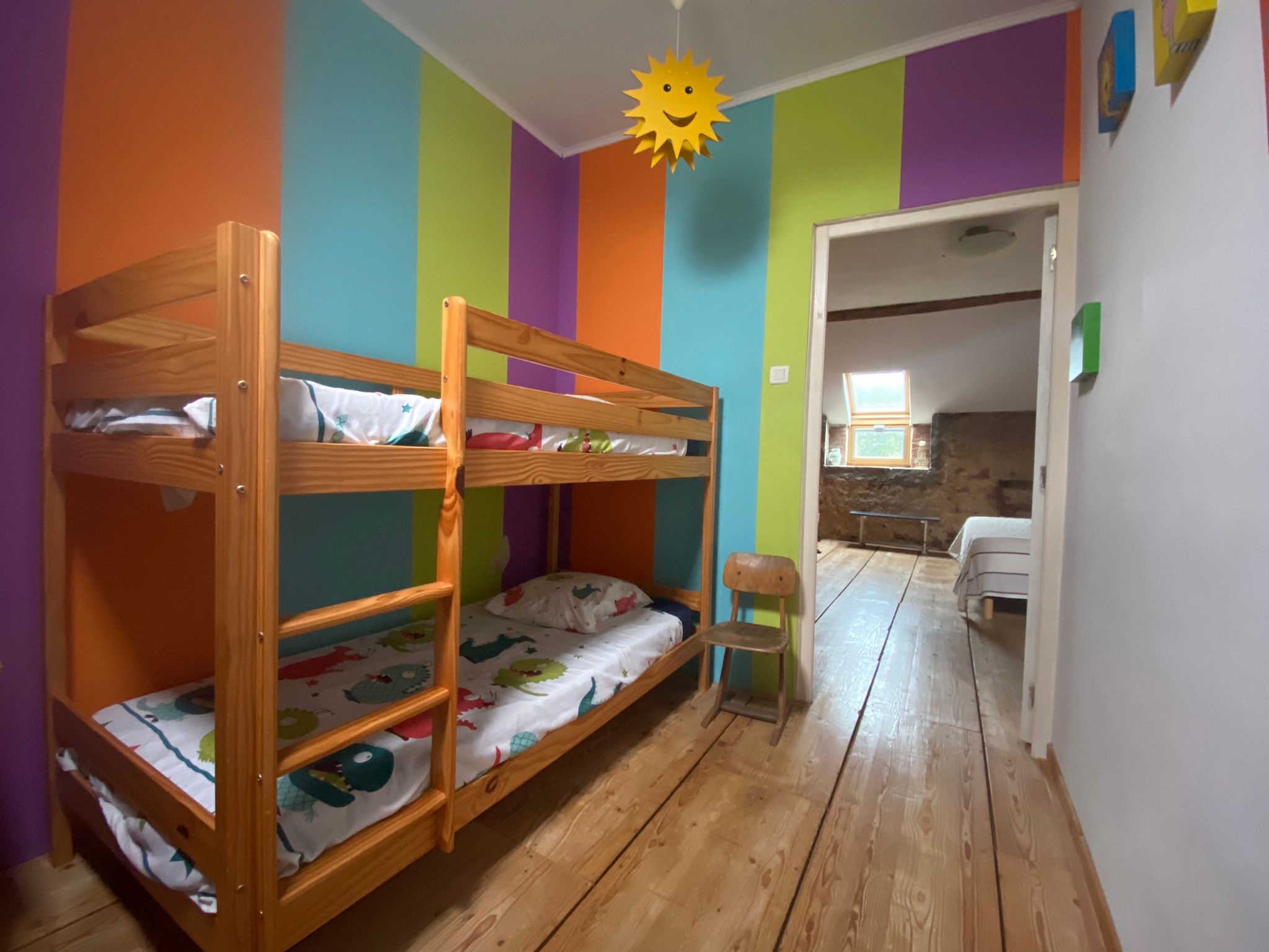 - stapelbed en los bed in aparte kamer